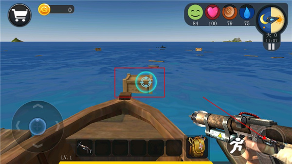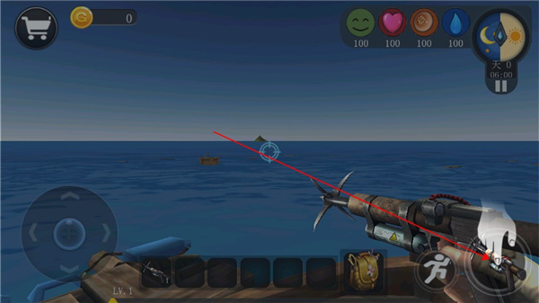 4、右边的按钮长按可以控制工具进行射击捕捞。